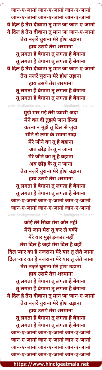 Lyrics of Janejana Janejana - जानेजानां जानेजानां