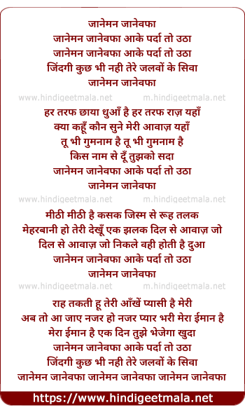 Lyrics of Janeman Janewafa Aake Parda Toh Utha - जानेमन जानेवफा आके पर्दा तो उठा