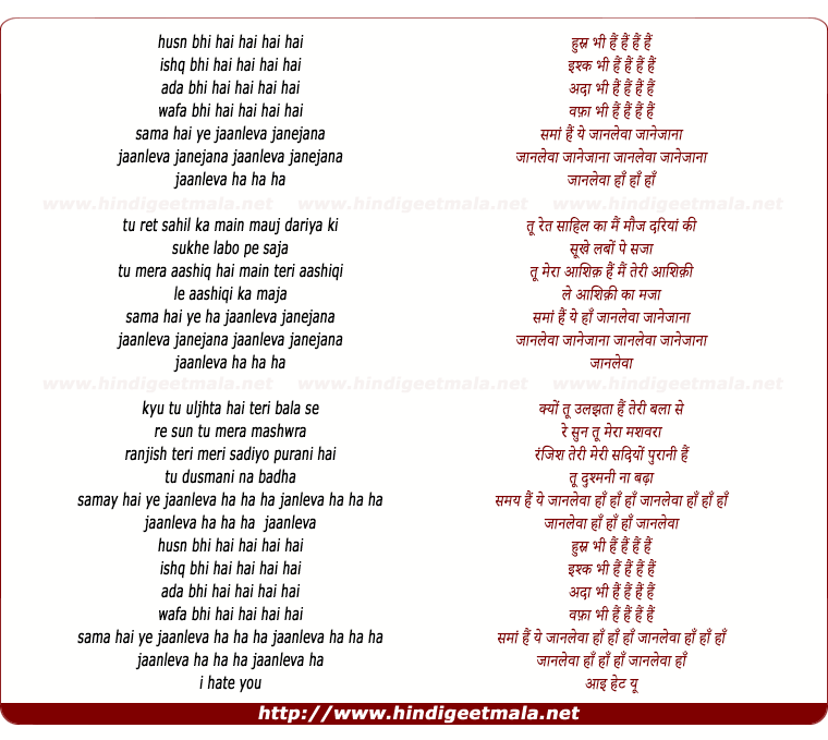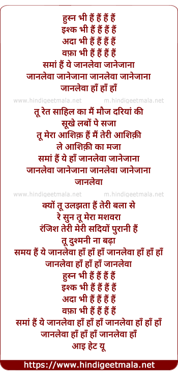 Lyrics of Janleva Janejaana - जानलेवा जानेजाना