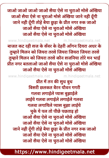 Lyrics of Jao Saiyan Aise Na Churao Mose Aankhiya - जाओ सैया ऐसे ना चुराओ मोसे अंखिया