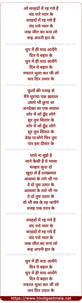 Lyrics of Jashn Jeet Ka Mana Lo - ओ सरहदों में रह गये हैं