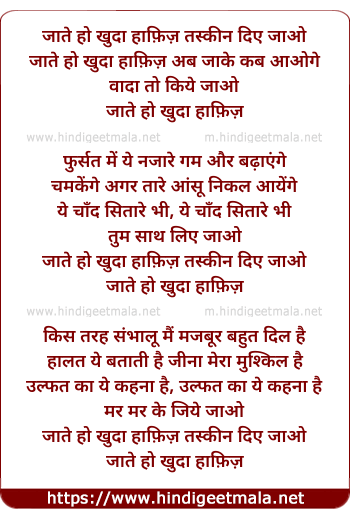 Lyrics of Jate Ho Khuda Haafiz - जाते हो खुदा हाफ़िज़
