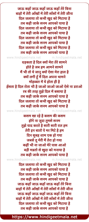 Lyrics of Jau Kaha Tere Bina - जाऊ कहाँ तेरे बिना