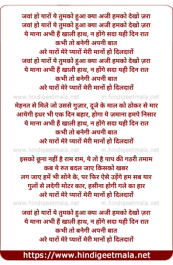 Lyrics of Javaan Ho Yaaro Ye Tumko - जवां हो यारों ये तुमको