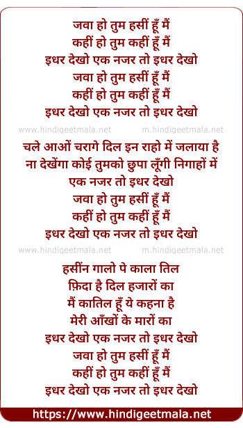 Lyrics of Jawa Ho Tum Hasin Hu Mai - जवा हो तुम हसीं हूँ मैं