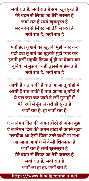 Lyrics of Jawaan Raat Hai - जवाँ रात है
