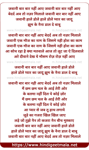 Lyrics of Jawani Baar Baar Nahi Aaye - जवानी बार बार नहीं आए