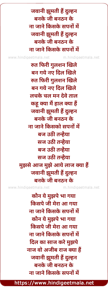 Lyrics of Jawani Jhumti Hai Dulhan - जवानी झूमती हैं दुल्हन