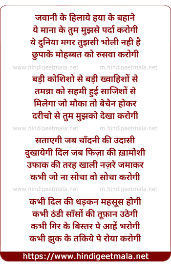 Lyrics of Jawani Ke Hilaye Haya Ke Bahane - जवानी के हिलाये हया के बहाने