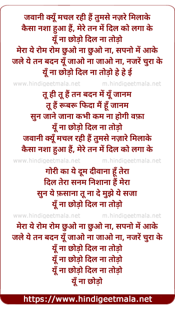 Lyrics of Jawani Kyu Machal Rahi - जवानी क्यूँ मचल रही