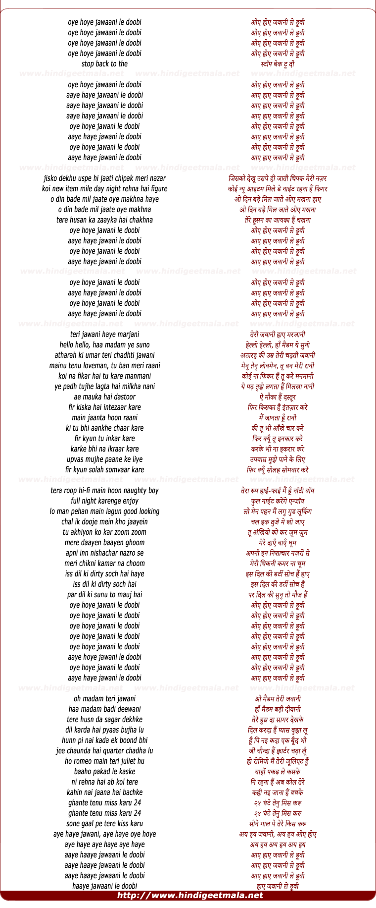Lyrics of Jawani Le Doobi - जवानी ले डूबी
