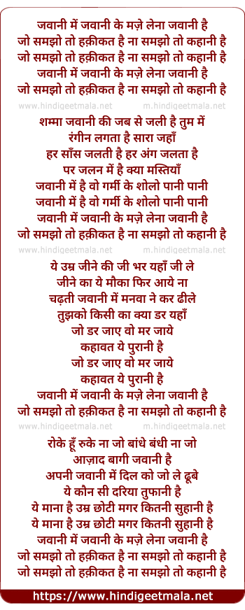 Lyrics of Jawani Main Jawani - जवानी में जवानी