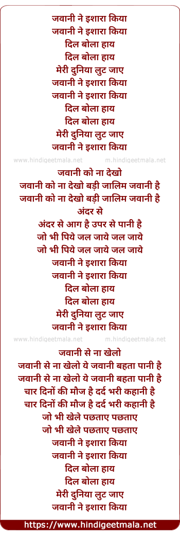 Lyrics of Jawani Ne Ishara Kiya - जवानी ने इशारा किया