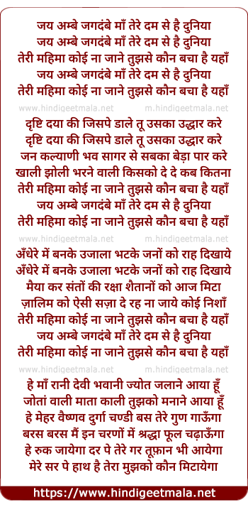 jay ambe jagadambe maa tere dam se hai duniya