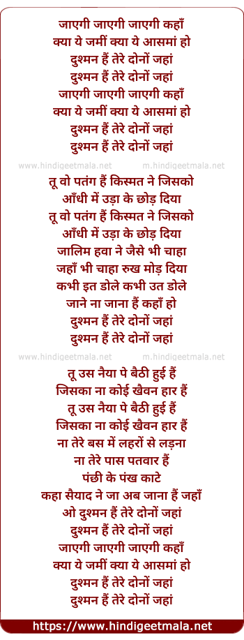 Lyrics of Jayegi Jayegi Jayegi Kahan - जायेगी जायेगी जायेगी कहाँ