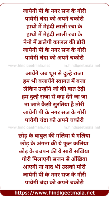 Lyrics of Jayengi Pee Ke Nagar - जायेगी पी के नगर