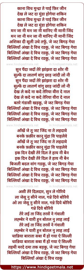 Lyrics of Je Jatt Bigad Geya - काना विच मुन्द्रा ते पाई फ़िर जीन