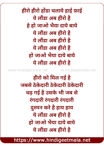 Lyrics of Je Launda Ab Hero Hai - जे लौंडा अब हीरो है