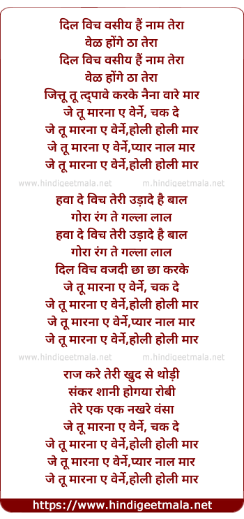 Lyrics of Je Tu Marna A Vairne - जे तू मारना अ वेर्ने