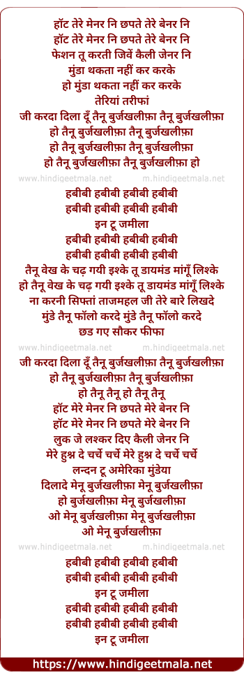Lyrics of Jee Karda Dila Doon Tainu Burj Khalifa - जी करदा दिला दूँ तैन्नू बुर्ज खलीफा