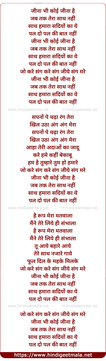 Lyrics of Jeena Bhi Koi Jeena Hai (Sad Version) - जीना भी कोई जीना है