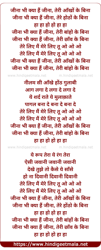 Lyrics of Jeena Bhi Kya Koi Jeena Hai (2) - जीना भी क्या कोई जीना है