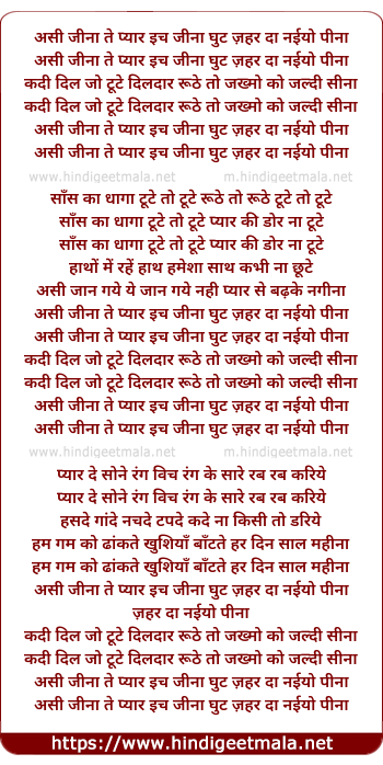 assi jeena te pyar ich jeena ghuth zeher da nayyo pina