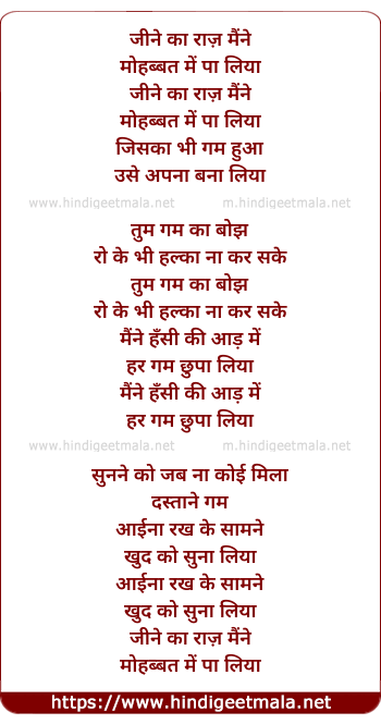 Lyrics of Jeene Ka Raaz - जीने का राज़ मैंने