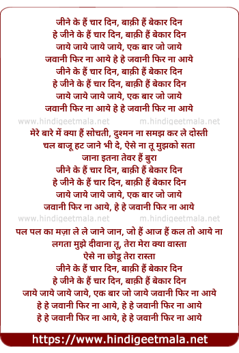 Lyrics of Jeene Ke Hain Chaar Din - जीने के हैं चार दिन