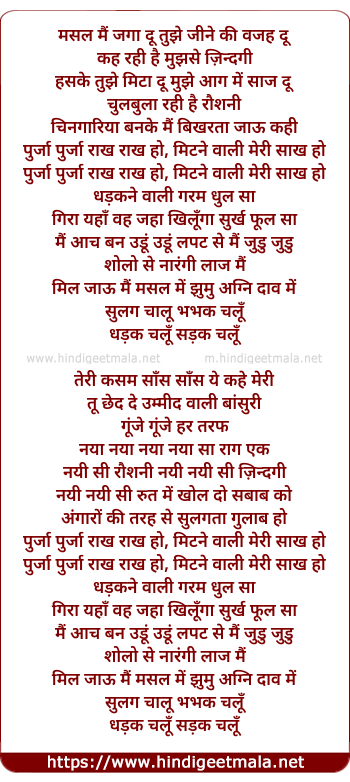 lyrics of song Mashal Mai Jaga Du Tujhe Jine Ki Wajah Du