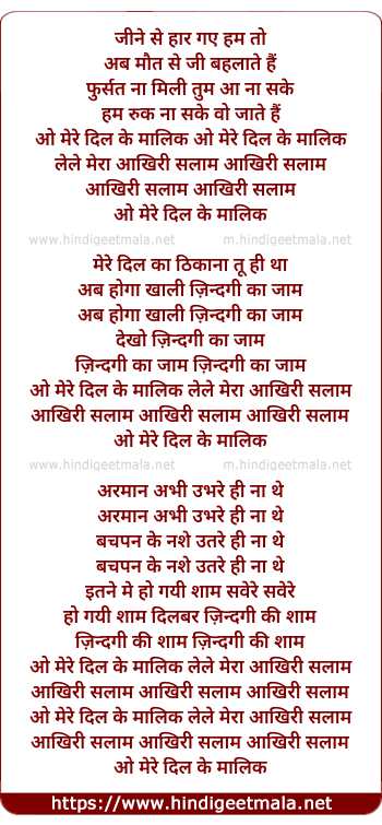 o mere dil ke malik lele mera aakhiri salam