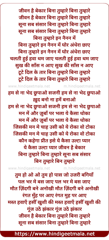 Lyrics of Jeevan Hai Bekar Bina Tumhare - जीवन है बेकार बिना तुम्हारे बिना तुम्हारे