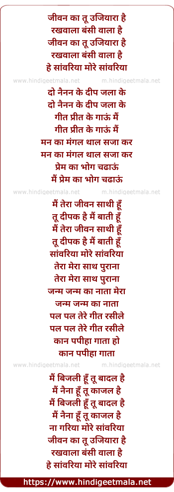 Poetic Translation - Lyrics of Jeevan Kaa Tu Ujiyara Hai - जीवन का तू उजियारा है