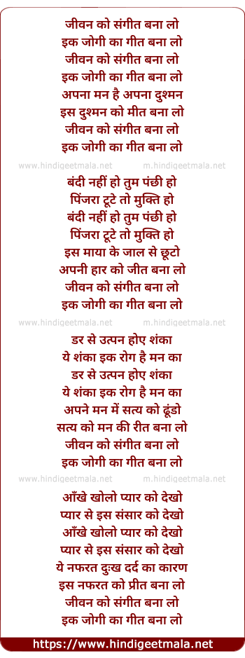Lyrics of Jeevan Ko Sangeet Bana Lo - जीवन को संगीत बना लो