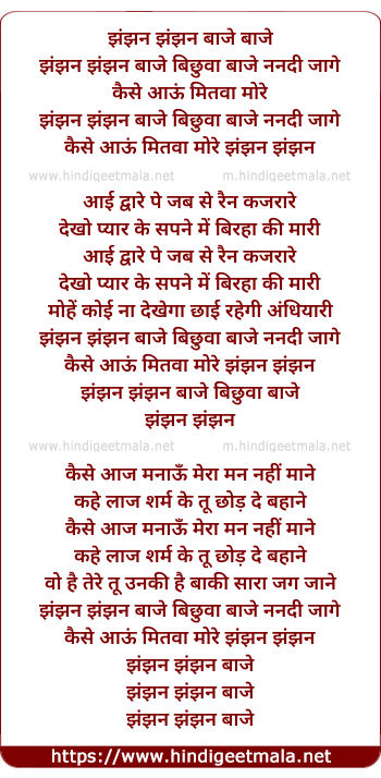 Lyrics of Jhajhan Jhanan Baje Bichhuaa - झंझन झंझन बाजे बिछुवा