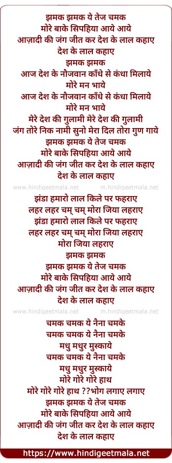 Lyrics of Jhamk Jhamak Ye Tej Chamak - झमक झमक ये तेज चमक