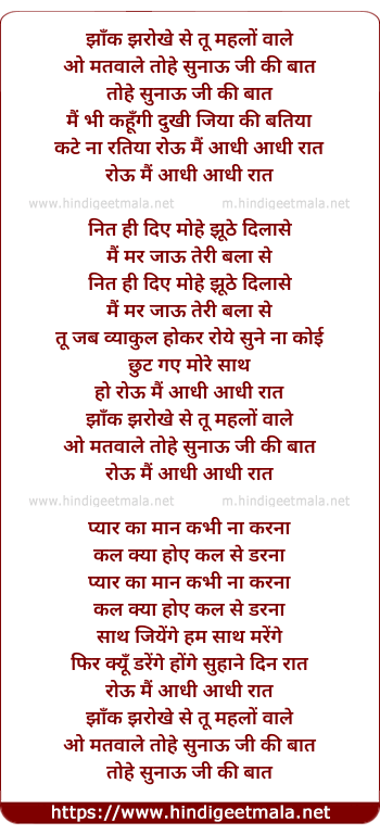 Lyrics of Jhank Jharoke Se Tu Mehlo Wale - झाँक झरोखे से तू महलों वाले