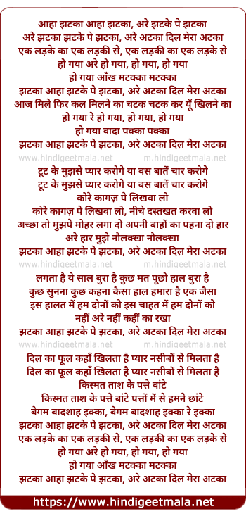 Lyrics of Jhatake Pe Jhataka Aankh Matakka - झटके पे झटका आँख मटक्का