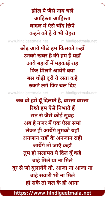 Lyrics of Jheel Pe Jaise Naav Chale - झील पे जैसे नाव चले