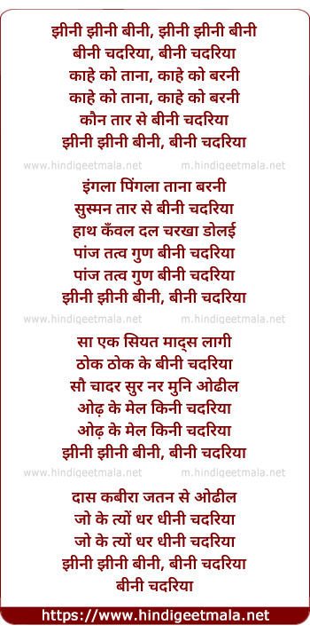 Lyrics of Jheeni Jheenii - झीनी झीनी
