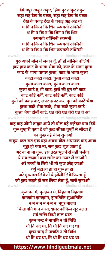 Lyrics of Jhingaapur Taakur Takur Kuttaa Kaataa - झिंगापुर ताकुर तकुर कुत्ता काटा