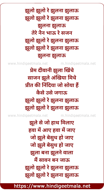 Lyrics of Jhoolo Jhoolo Re Jhoolna - झूलो झूलो रे झुलना