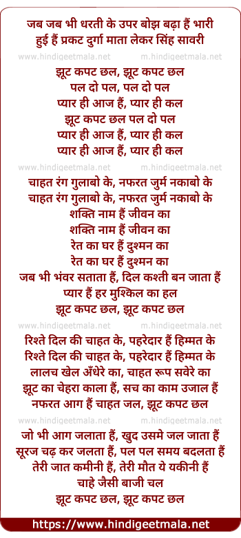 Lyrics of Jhoot Kapat Chhal - झूट कपट छल