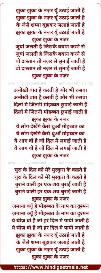 Lyrics of Jhuka Jhuka Ke Nazar Yun Uthayi Jati Hai - झुका झुका के नज़र यूँ उठाई जाती है