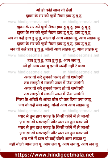 Lyrics of Jhukake Sar Ko Puchho Madam How Do You Do - झुका के सर को पूछो मैडम हाव डू यू डू