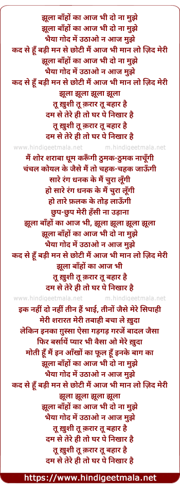 Lyrics of Jhula Banhon Ka Aaj Bhii Do Na Mujhe - झूला बाँहों का आज भी दो ना मुझे
