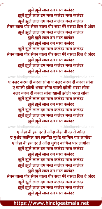 Lyrics of Jhule Jhule Lal - झूले झूले लाल दम मस्त कलंदर