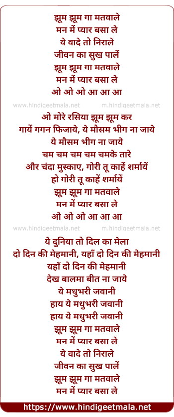 Lyrics of Jhum Jhum Ga - झूम झूम गा