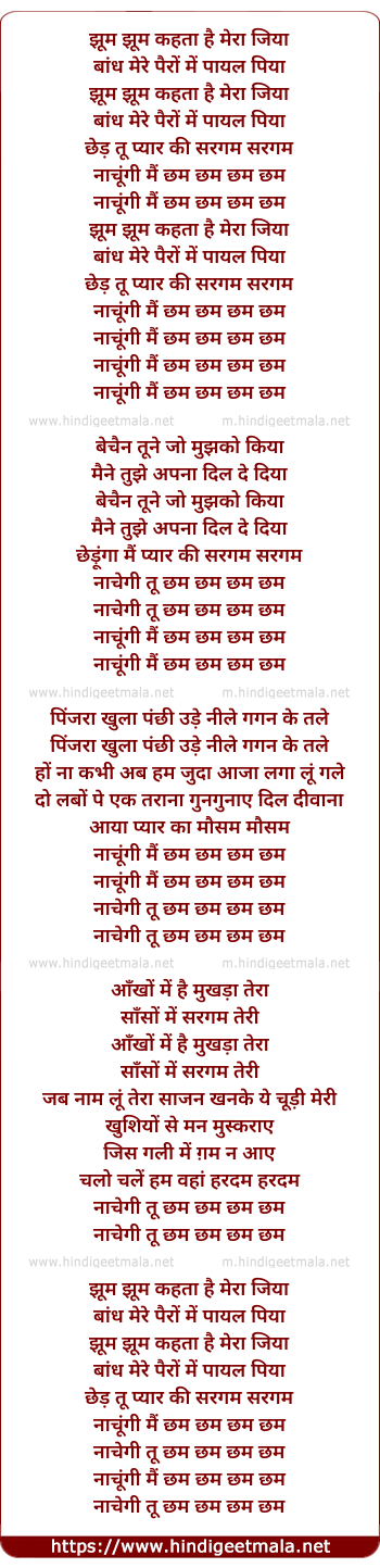 Lyrics of Jhum Jhum Kahta Hai - झूम झूम कहता है