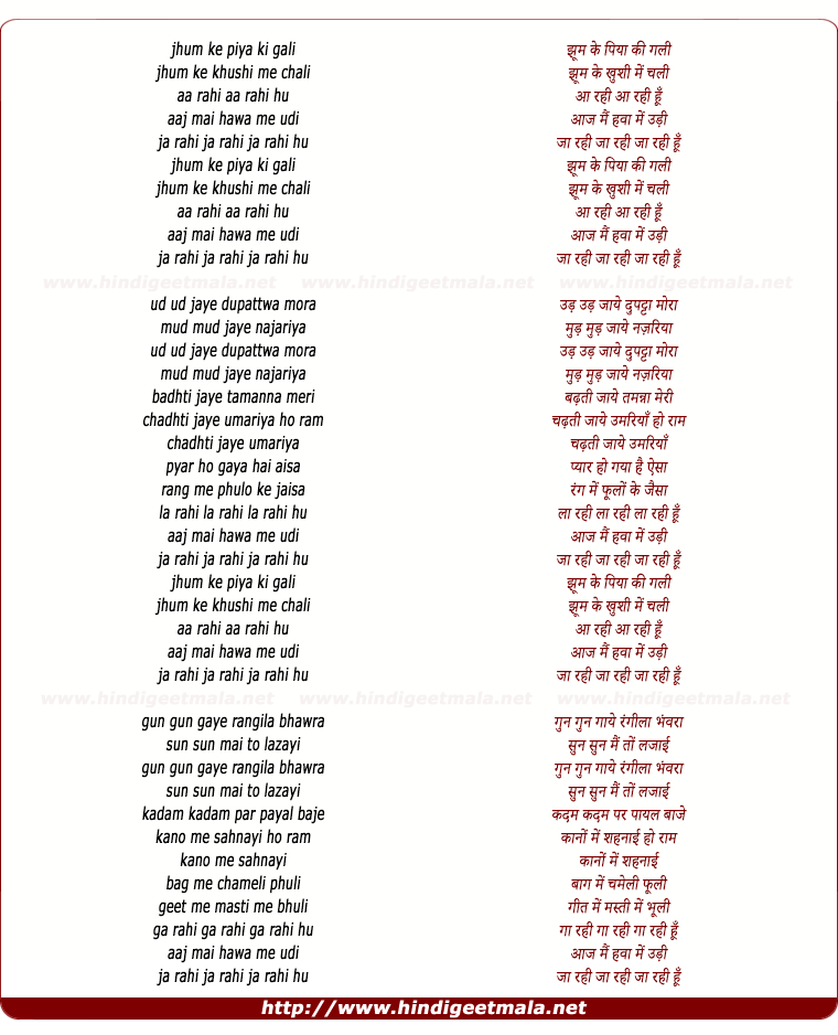 Lyrics of Jhum Ke Piya Ki Gali Jhum Ke Khushi Me Chali - झूम के पिया की गली झूम के ख़ुशी में चली